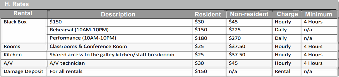$150 per day for move-in, rehearsals, strike and any other days the theater is booked for your group